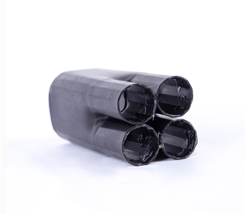 產(chǎn)品特點(diǎn):采用交聯(lián)聚烯烴材料和熱熔膠復(fù)合而成,套在多芯電纜線芯分支處,加熱即收縮,內(nèi)壁的熱熔膠會將電纜緊緊粘住,起到防水防潮密封保護(hù)作用,外層的輻射交聯(lián)聚烯烴材料可起到電氣絕緣防護(hù)作用。