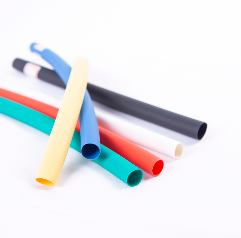 雙壁熱縮管,由輻射交聯聚烯烴材料和熱熔膠雙層構成。外層聚烯烴絕緣、阻燃、理化電氣性能優良,內層熱熔膠能緩沖機械應變和密封性好。主要功能是絕緣、密封、防水、防腐、防漏氣等,普遍應用于各類線束、電線電纜和金屬管棒等的密封絕緣、防水防腐等領域。